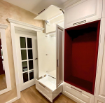 Знакомство с вашей компанией решили начать с кухни (нам вас рекомендовали соседи). Мы в семье любим все под старину, поэтому выбор пал на классический (прованского стиля) гарнитур с патиной. Умеренно светлый (я категорически против белого на кухне) и очень эффектный. Обошелся на удивление недорого. Особенно хочу отметить угловые подвесные шкафчики для буфета - со стеклянными красивыми дверцами. Для нас такое качество - показатель того, что наше следующее приобретение - мебель в гостиную, будем так же делать у вас. Примите от нас благодарность! Елизавета Анатольевна